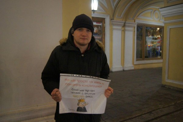 В Санкт-Петербурге у Гостиного двора задержали участников одиночных пикетов против изменения Конституции Романа Самойлова и Андрея Макашова. Об этом сам Макашов сообщил в правовой бот ОВД-Инфо.