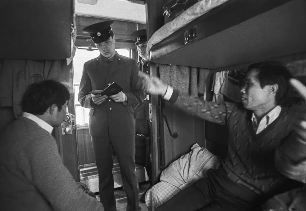 Россияне шли на поезд как по одиночке, так и бригадами: одни пробивались к окну, объяснялись с продавцом и расплачивались, другие ловили выкидываемые из окна шмотки, проверяли их на дефекты и упаковывали в сумки. Если из окна прилетало что-то не то или товар был с изъяном, обменять его получалось не у всех — проникнуть в вагон не позволяли солидные проводники в белых фуражках и с большими желтыми звездами на погонах.
