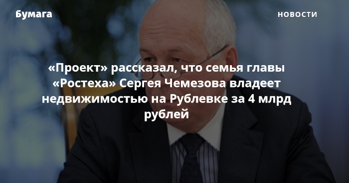 Здесь была новость о расследовании «Проекта» про недвижимость, которой, по данным издания, владеет семья главы госкорпорации «Ростех» Сергея Чемезова.