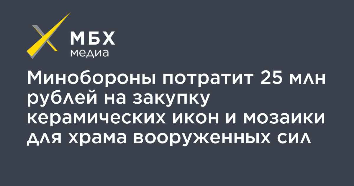 Управление имуществом специальных проектов Минобороны потратит почти 25 млн рублей на закупку икон, мозаики и мебели для Главного храма вооруженных сил. Соответствующие тендеры «МБХ медиа» обнаружило на портале госзакупок.
