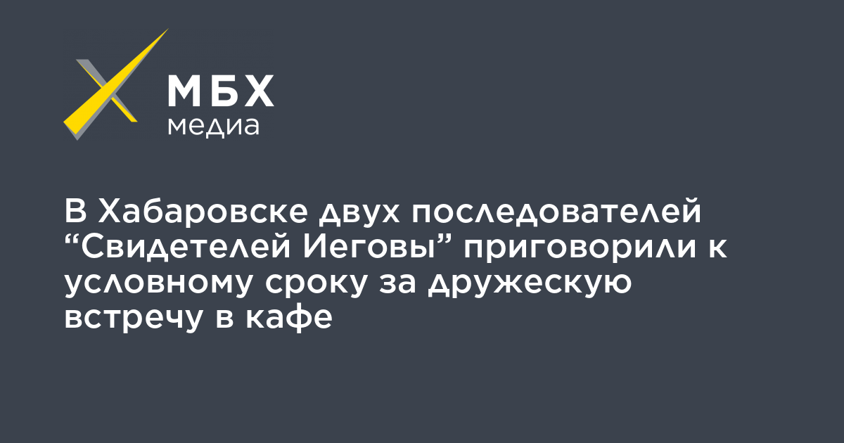 Железнодорожный районный суд Хабаровска приговорил к двум годам условного срока последователей «Свидетелей Иеговы» Николая Полеводова и Станислава Кима за дружескую встречу в кафе, об этом «МБХ медиа» сообщили в Европейской ассоциации «Свидетелей Иеговы».
