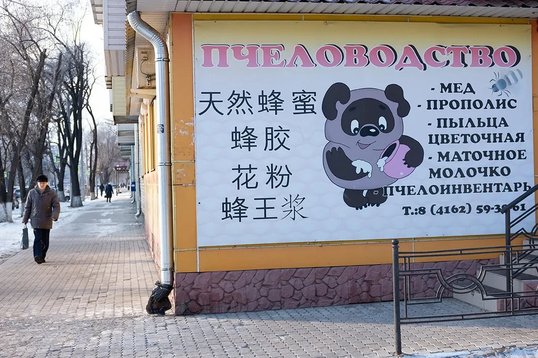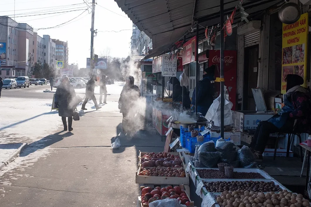 — Да у нас все ориентировано на Китай! Из Хэйхэ постоянно приезжают люди — они любят наше золото. А теперь посмотрите — пусто все, — разводит руками крашеная блондинка Галина, продавщица одной из многочисленных (я насчитал около десяти) ювелирок на улице 50-летия Октября. Три ее коллеги в этот момент с улыбками до ушей окружают единственного и, кажется, случайного посетителя магазина — какую-то бабушку в старенькой шубе.