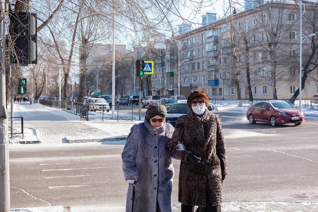 На деревянной горке катаются дети в разноцветных комбинезонах, пенсионерки прогуливаются, грея руки в карманах шуб. По городу ходят желтые автобусы, полные людей, в кофейнях болтает молодежь (и все — без масок, несмотря на то, что еще в конце января благовещенские власти ввели «масочный режим»), а из колонок единственной на все Приамурье модной забегаловки Black Star Burger с огромной растяжкой улыбающегося Тимати на входе, на всю улицу про любовь и разлуку поет Егор Крид.