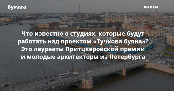 В Петербурге объявили восемь команд, которые будут разрабатывать концепции парка «Тучков буян» на участке у Биржевого моста. Среди них — лауреаты Притцкеровской премии, которые создали проект галереи современного искусства Тейт в Лондоне, и молодые агентства из Парижа и Петербурга. Итоговую концепцию парка объявят летом 2020 года на экономическом форуме.
