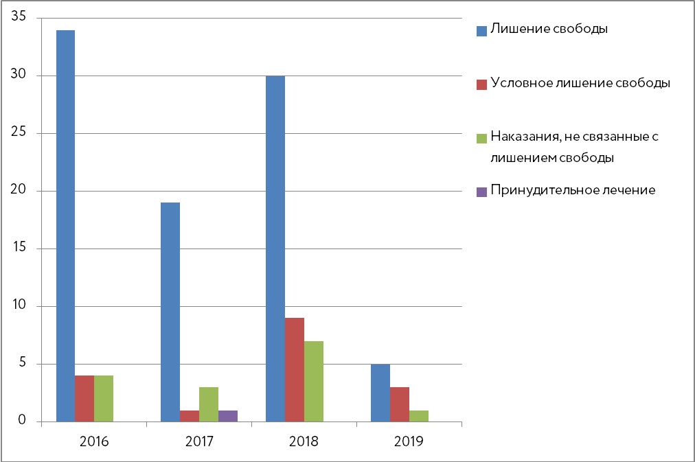 Рис. 6. Наказания за идеологически мотивированное насилие (2016–2019)