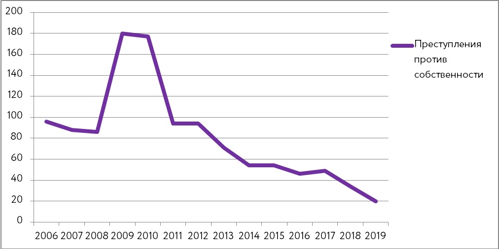 Рис. 3. Динамика преступлений против собственности (2006–2019)