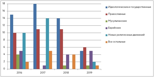 Рис. 4. Оскверненные религиозные и идеологические объекты (2016–2019)