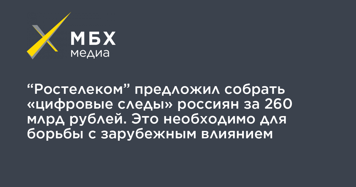 «Ростелеком» предложил собрать «цифровые следы» россиян за 260 млрд рублей. Это необходимо для борьбы с зарубежным влиянием