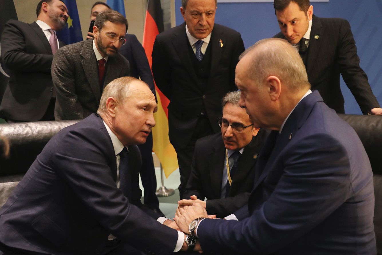 Турция в конце 2019 года переправила в Ливию более четырех тысяч боевиков из числа своих сирийских «прокси», а также небольшое количество инструкторов и операторов сложной техники из состава своей армии. Этих сил было явно недостаточно для того, чтобы кардинально изменить ситуацию на фронтах; сразу по прибытии боевики понесли потери. Однако в этот момент Путин и Эрдоган решили заморозить и этот конфликт. С 12 января 2020 года было объявлено перемирие во всей Ливии, однако последующие переговоры об урегулировании в Москве окончились неудачей: Халифа Хафтар, считающий себя без пяти минут победителем, отказался подписывать итоговые документы, фиксирующие двоевластие. Его не смогли уговорить пойти на мир и лидеры стран ЕС на конференции в Берлине.