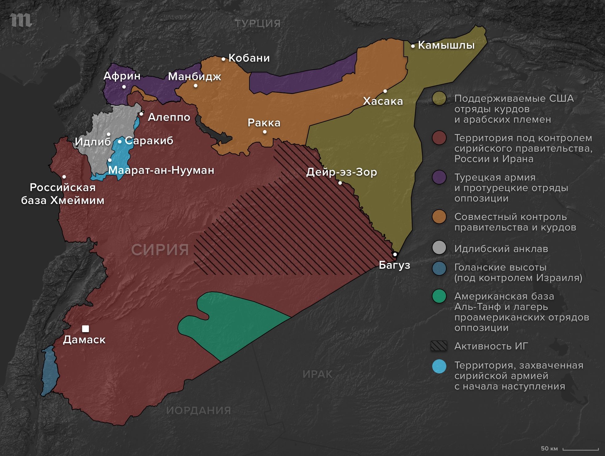 С тех пор провинция Идлиб и несколько прилегающих к ней районов остается единственным местом в Сирии, где продолжает действовать вооруженная оппозиция. Реальное замирение или уничтожение этого анклава будет означать конец гражданской войны. Правительство в Дамаске установит контроль почти над всей страной; останутся только территории на севере и востоке, оккупированные Турцией и США, но, очевидно, это будут зоны «холодного конфликта» и боевых действия за них вести не придется — вывод иностранных войск будет вопросом многолетних переговоров.