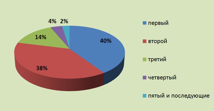 Итак, для начала посмотрим, как распределялись в 2017 году дети, в зависимости от очередности рождения: