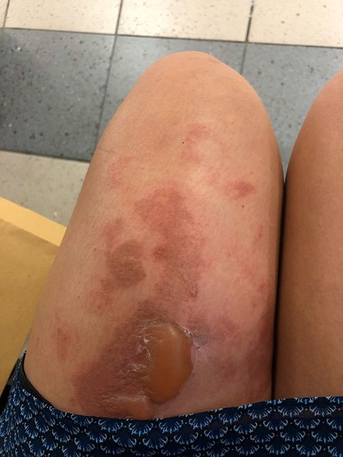 Я проснулась от того, что не могла пошевелиться. Нога будто приклеилась к одеялу, и пришлось аккуратно снимать его, надеясь, что не вместе с кожей. Придя в себя, я собрала вещи и поехала в неотложку. После четырёх часов в очереди добрая медсестра дала мне сильный обезбол и передвинула мою очередь на «срочную». Поднялась температура, я буквально горела, это выглядело как настоящий ожог второй степени. Люди рядом отворачивались, стараясь не смотреть на мою ногу, кто-то даже говорил «о господи...»