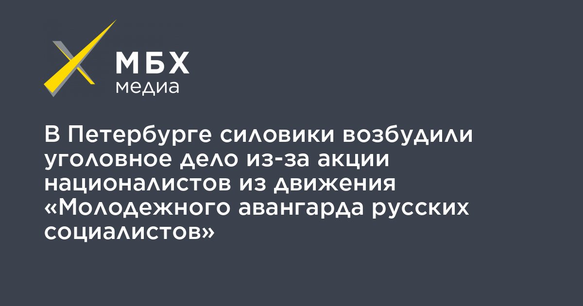 В Санкт-Петербурге силовики возбудили уголовное дело по статье о хулиганстве по мотивам национальной ненависти из-за марша активистов движения «Молодежный авангард русских социалистов» (МАРС) с баннером и файерами. Об этом «Северо-Запад. МБХ медиа» сообщил участник движения, который попросил не называть его имя.