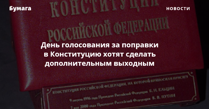 Голосование за поправки в Конституцию РФ планируют провести в будний день, который объявят дополнительным выходным. Об этом сообщает «РБК».