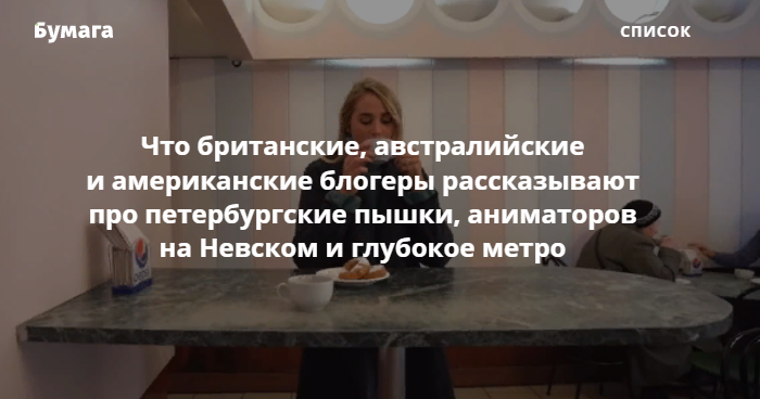 «Бумага» выбрала семь популярных англоязычных тревел-блогов на ютьюбе, в которых иностранцы рассказывают о своих впечатлениях от Петербурга.