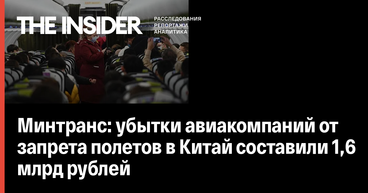 Минтранс: убытки авиакомпаний от запрета полетов в Китай составили 1,6 млрд рублей