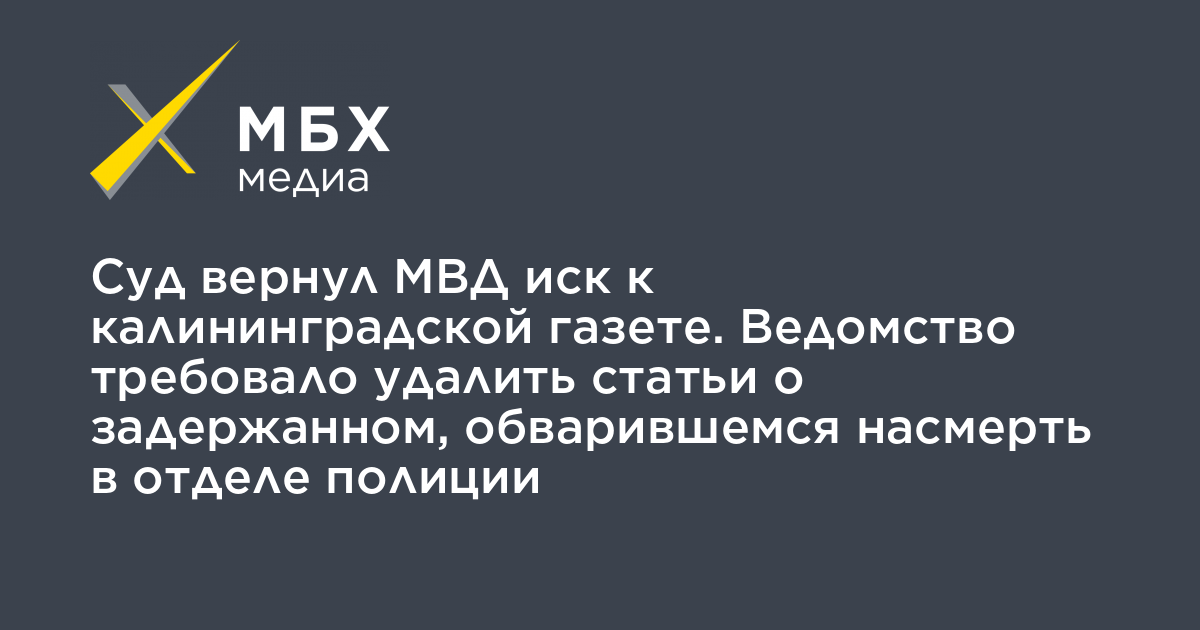 Суд вернул МВД иск к калининградской газете. Ведомство требовало удалить статьи о задержанном, обварившемся насмерть в отделе полиции