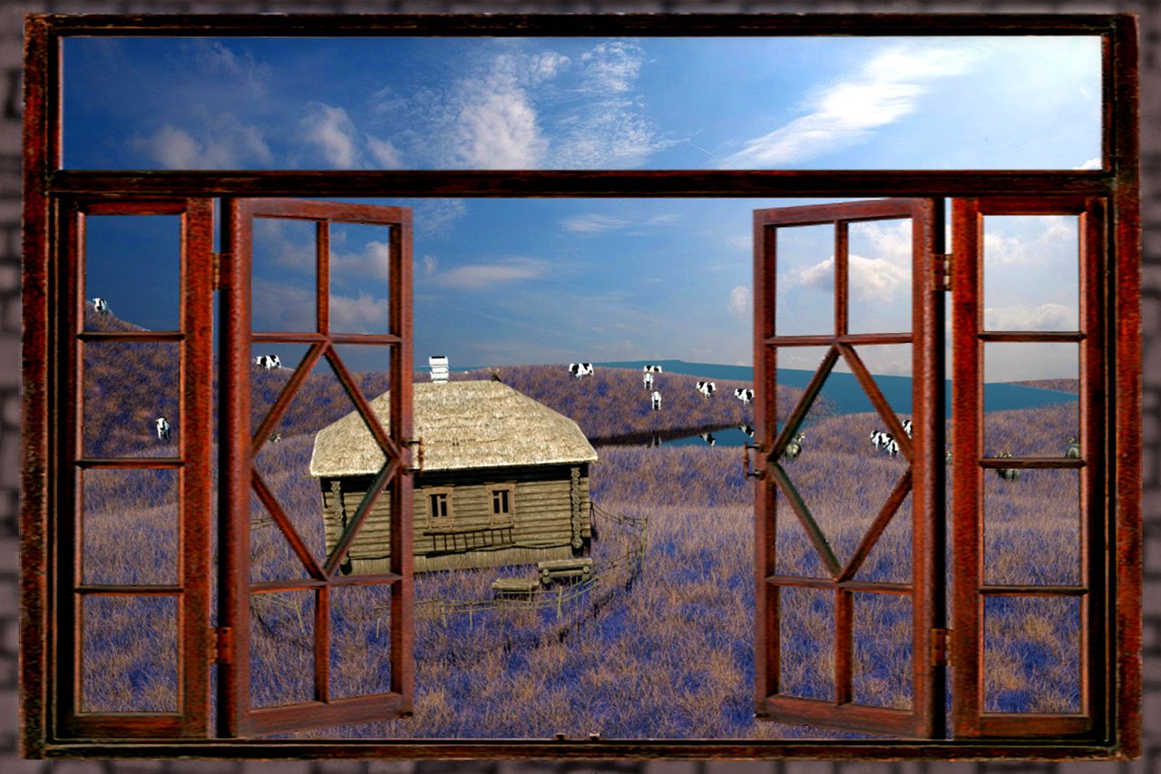 На самом последнем, пятом, этаже у Владимира Юрьевича кабинет. Огромный стол, заваленный бумагами. Компьютер стоит у окна, а оттуда невероятный вид, который меня поразил ещё в автобусе. Тут можно долго стоять, как на смотровой площадке. Река, а за ней поля и овцы пасутся. Очень красиво.