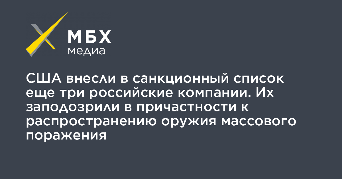 США внесли в санкционный список еще три российские компании. Их заподозрили в причастности к распространению оружия массового поражения