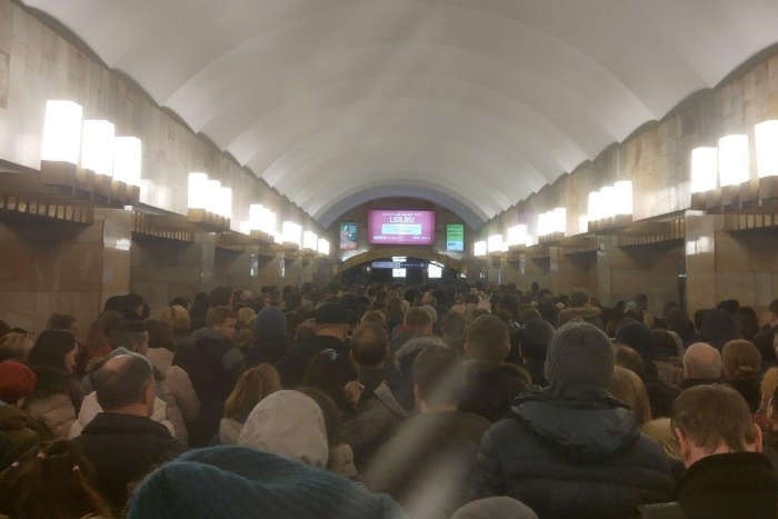 На «Гражданском проспекте» сломался один из эскалаторов. В вестибюле образовалась давка
