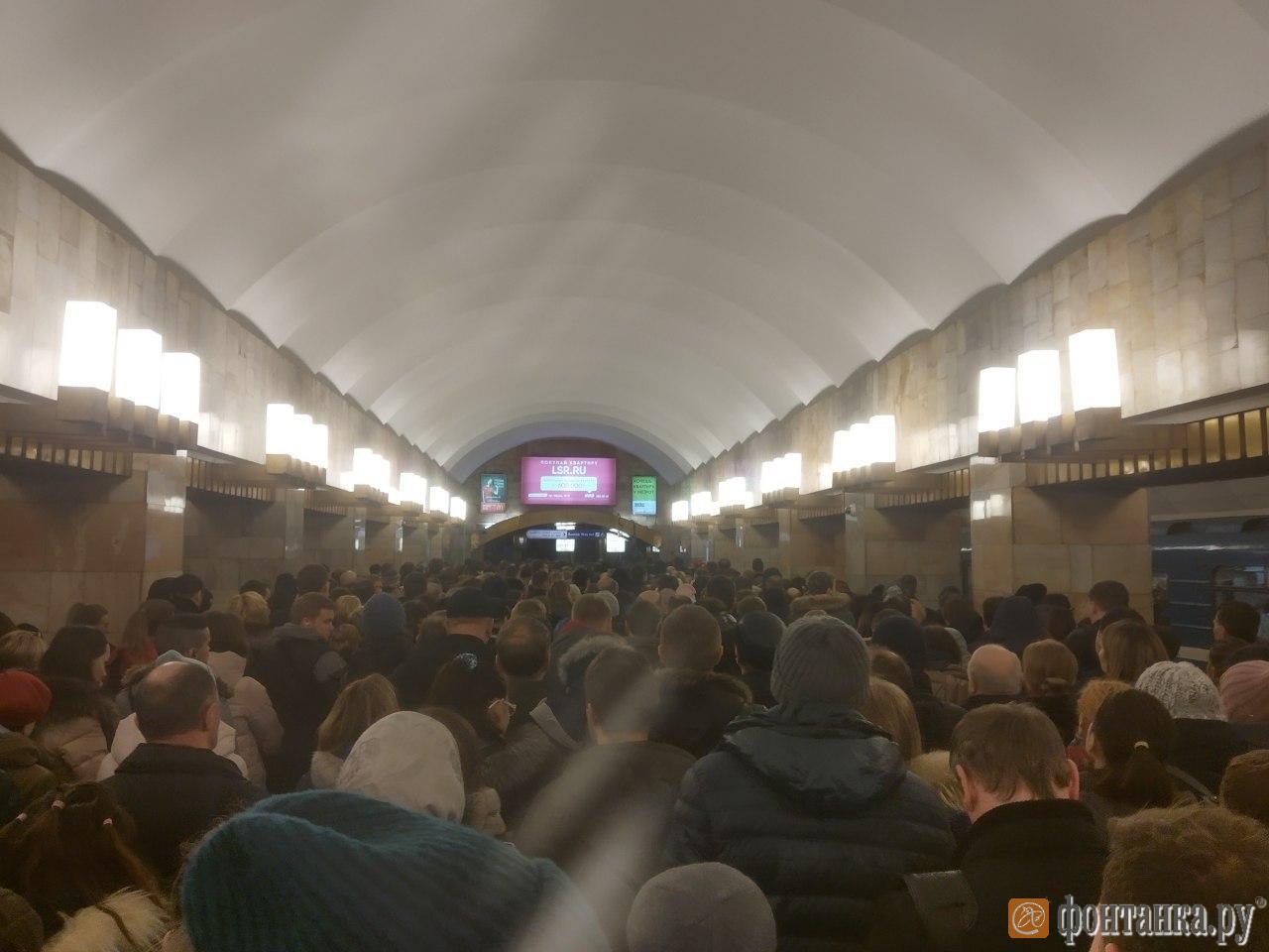 Сломаться мог эскалатор, который следует наверх, однако точной информации о поломке пока нет. На станции оказались десятки человек, выход из вагонов был затруднен.