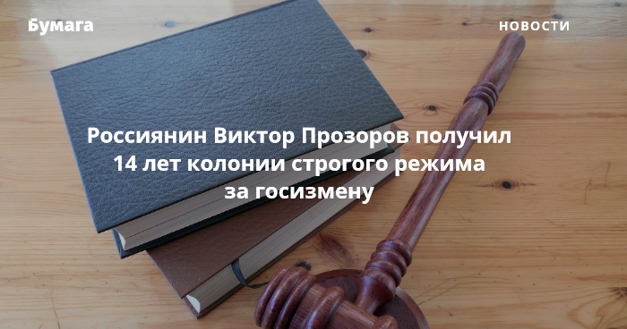 Суд в Петербурге приговорил к 14 годам колонии строгого режима пенсионера Виктора Прозорова по делу о государственной измене. Об этом сообщает объединенная пресс-служба судов города.