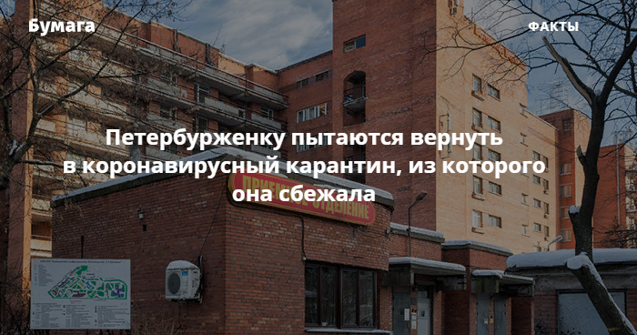 Сбежавшую из карантина петербурженку пытаются туда вернуть