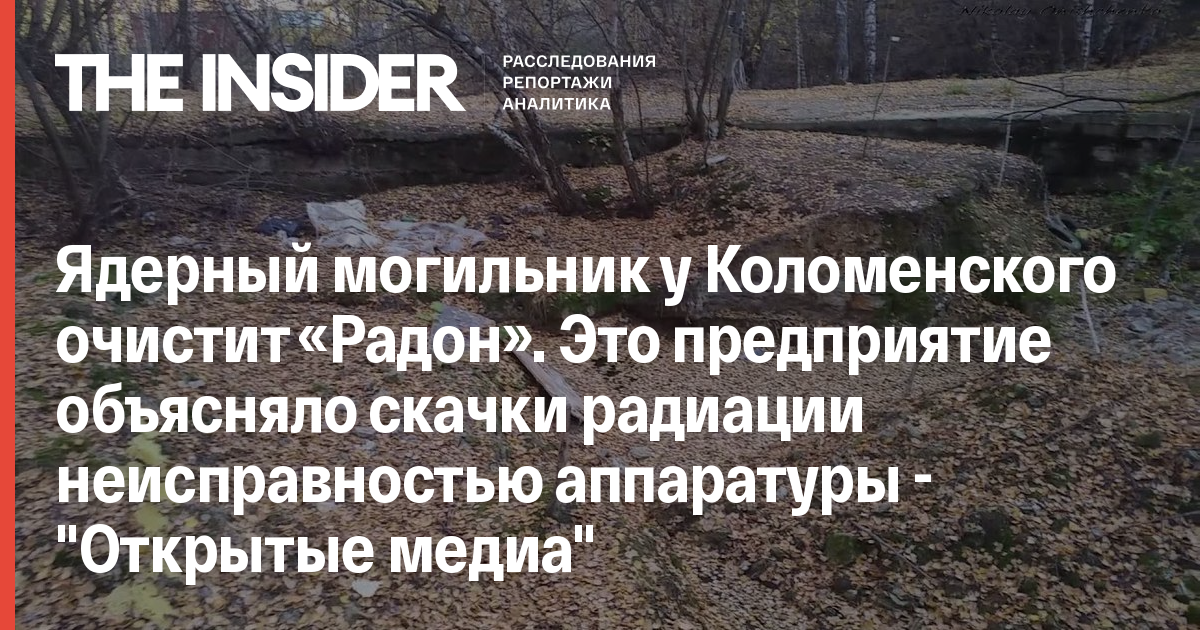 Подрядчиком Москвы по вывозу отходов из радиоактивного могильника возле парка Коломенское стало предприятие «Радон». Как пишут «Открытые медиа», «Радон» был единственным участником конкурса на сайте госзакупок. Именно эта компания объясняла ранее скачки радиации в Коломенском неисправностью собственного оборудования.