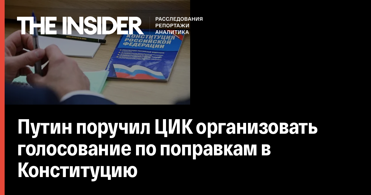 Путин поручил ЦИК организовать голосование по поправкам в Конституцию