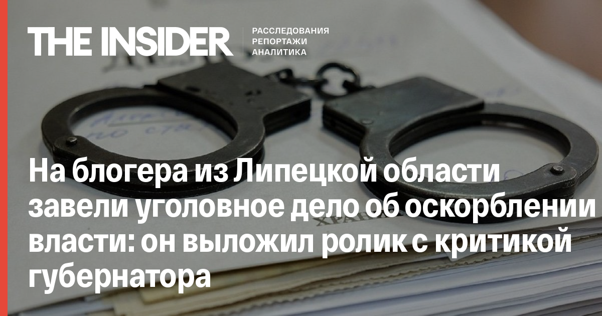 На блогера из Липецкой области завели уголовное дело об оскорблении власти: он выложил ролик с критикой губернатора
