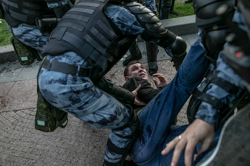 Напасть на полицейского с холодным оружием — условный срок, схватить за запястье на митинге — 2 года колонии. Как в России судят по 318-й статье
