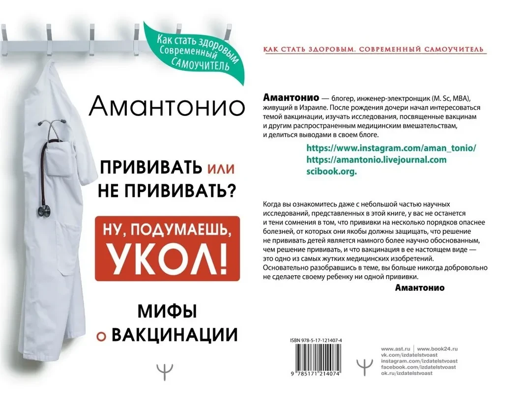 В начале февраля одно из крупнейших издательств России АСТ выпустило в редакции «Прайм» книгу израильского блогера и инженера-электронщика Антона Амантонио — это псевдоним, свое настоящее имя автор называть отказывается из-за страха нападок со стороны ученых критиков — под названием «Прививать или не прививать, или Ну, подумаешь, укол! Мифы о вакцинации». Книга была издана небольшим тиражом в 2000 экземпляров, однако ее раскупили меньше чем за сутки. При этом на стадии подготовки книги разгорелся публичный скандал: часть представителей популяризаторов науки в России — среди них, например, обладатель премии «Просветитель» Петр Талантов — намекнули, что больше не будут работать с «АСТ», если книга будет опубликована. Как только книга вышла, несколько авторов сразу заявили о прекращении сотрудничества с издательством. И под давлением общественности «АСТ» принял решение продажи книги прекратить.