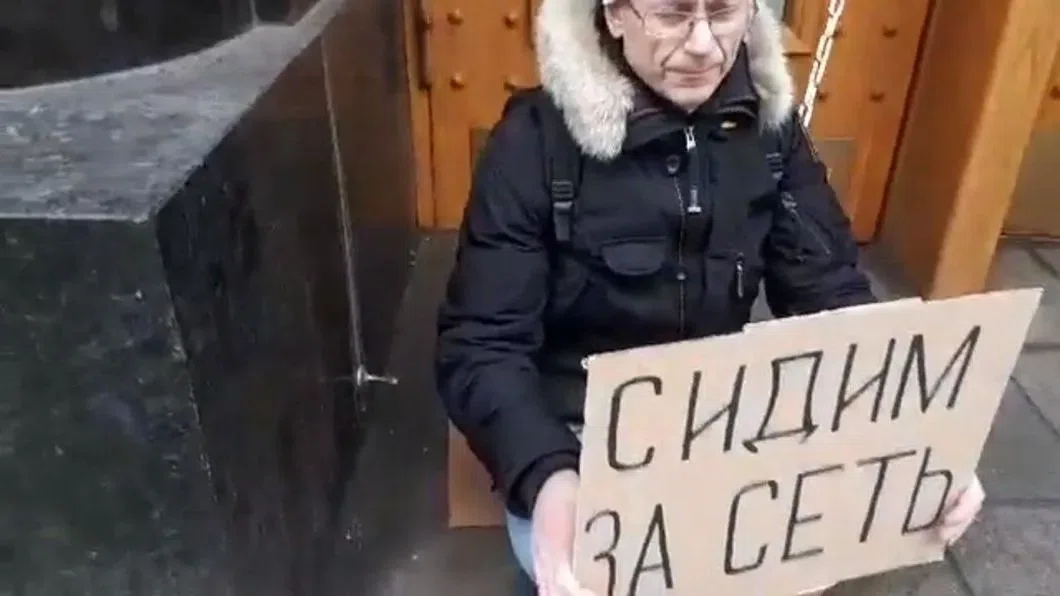 У здания ФСБ в Москве задержали активиста, приковавшего себя к двери в поддержку осужденных по делу «Сети»