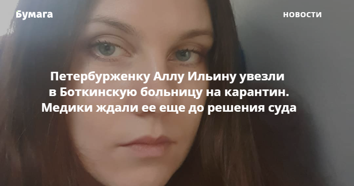 Днем 17 февраля петербурженку Аллу Ильину, которую суд постановил принудительно отправить под коронавирусный карантин, увезли из зала суда в Боткинскую больницу. Об этом сообщает корреспондент «Бумаги» с места событий.