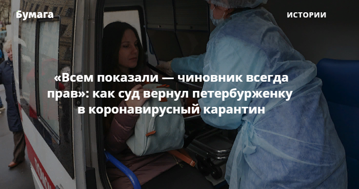 Петербурженку Аллу Ильину, сбежавшую из-под коронавирусного карантина, спустя 10 дней принудительно отправили в Боткинскую больницу. Этого потребовал Роспотребнадзор, который преследовал девушку в течение недели. Ильиной предстоит пробыть в карантине минимум до 19 февраля.