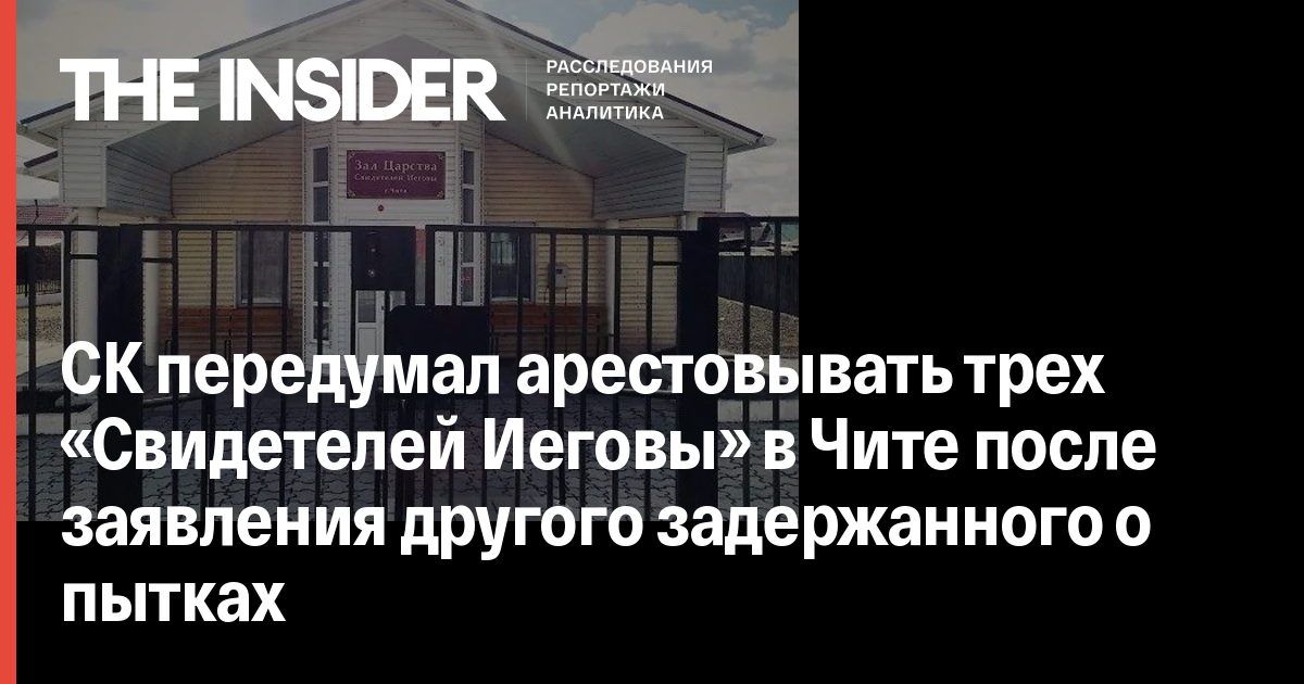 В Забайкалье Следственный комитет отозвал ходатайство об избрании меры пресечения для трех задержанных ранее «Свидетелей Иеговы». Как рассказал The Insider адвокат Артур Ганин, их выпустили из изолятора временного содержания.