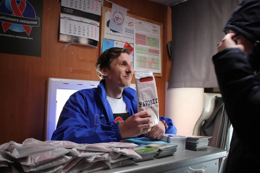 У нас есть мобильные пункты — это переоборудованные автобусы. Они выезжают в разные районы города, где наши работники тестируют людей на ВИЧ, гепатит и сифилис, обменивают использованные шприцы на новые, дают воду и влажные салфетки. Также предоставляются услуги психолога и социального работника, который может сопроводить человека до СПИД-центра и помочь в получении терапии.