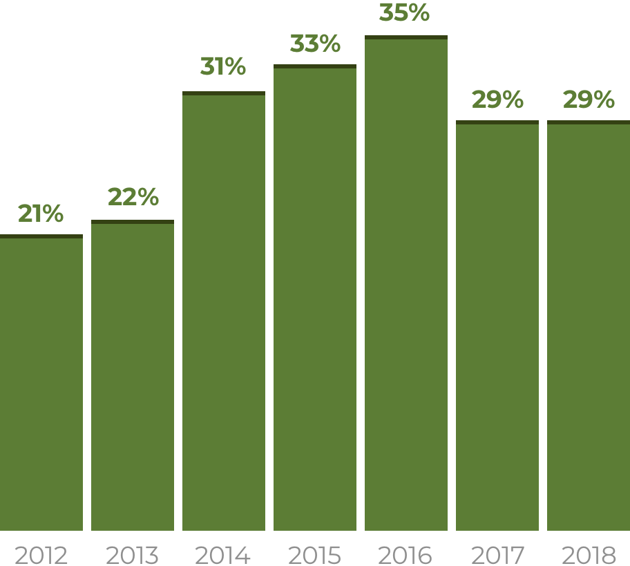 Потеряли в деньгах по сравнению с 2012 годом только ФСО (сокращение — 14%), МВД (сокращение — 12%) и МЧС (сокращение на 2%). Снижение расходов на МВД — самое масштабное случилось в 2017 году — связано с перераспределением средств в появившуюся на его основе Росгвардию. В 2018 году все силовые ведомства нарастили бюджет по сравнению с предыдущим годом за исключением ФСО, однако об этом свидетельствует только открытая часть бюджета, какая доля трат ведомства проходит по закрытым статьям — неизвестно.