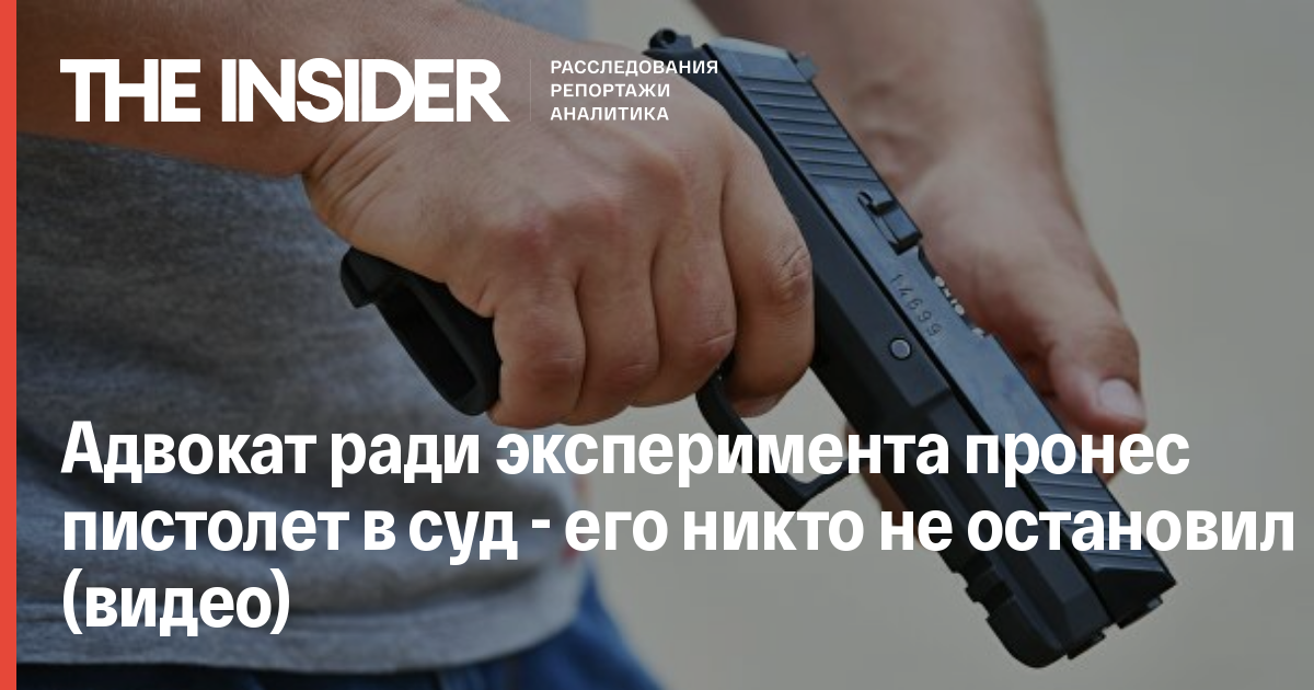 12 февраля экс-начальник ФСИН застрелился в зале Чертановского суда после обвинительного приговора. СК пообещал провести немедленную проверку обстоятельств, при которых подсудимый пронес в здание суда оружие. Однако проверка, судя по всему, так и не была проведена. Как рассказал The Insider адвокат АБ «Мусаев и партнеры» Алексей Голенко, на следующий же день он беспрепятственно прошел через рамки суда с травматическим пистолетом. Рамки на пистолет не отреагировали, при обыске его тоже не нашли. Голенко снял на видео диалог с судебными приставами и намерен обжаловать их действия в суде. По иронии, его жалобу на работу Чертановского суда будет рассматривать тот же самый Чертановский суд.