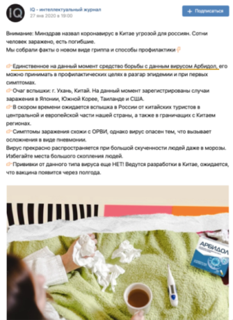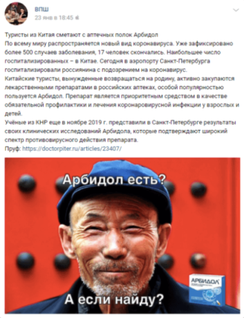 Авторы некоторых постов утверждали, что «Арбидол» — единственное лекарство от коронавируса. После публикации vc.ru часть пабликов удалили посты.