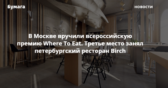 В ноябре в Петербурге вручили городскую премию Where To Eat. Тогда во второй раз лучшим рестораном стал Birch. О десяти лучших заведениях города по версии Where To Eat читайте в материале «Бумаги».