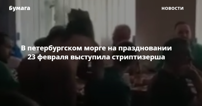 В городском бюро судебно-медицинской экспертизы в Петербурге на праздновании 23 февраля выступила стриптизерша. Видео очевидца опубликовала «Фонтанка».