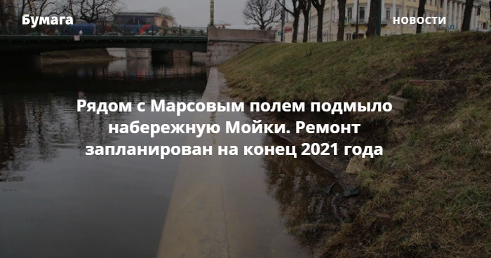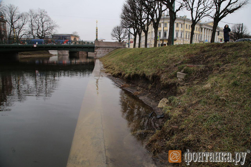 Между Марсовым полем и Михайловским садом часть берега набережной реки Мойки подтопило, из-за чего он сполз в воду. Об этом пишет «Фонтанка».