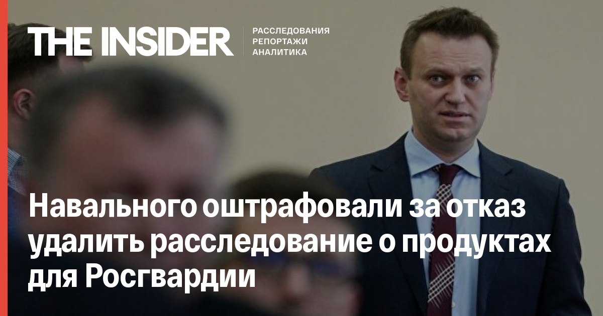 Суд оштрафовал Алексея Навального на пять тысяч рублей за отказ удалить расследование о поставках продуктов для Росгвардии по завышенным ценам. Об этом сам Навальный сообщил в Instagram.