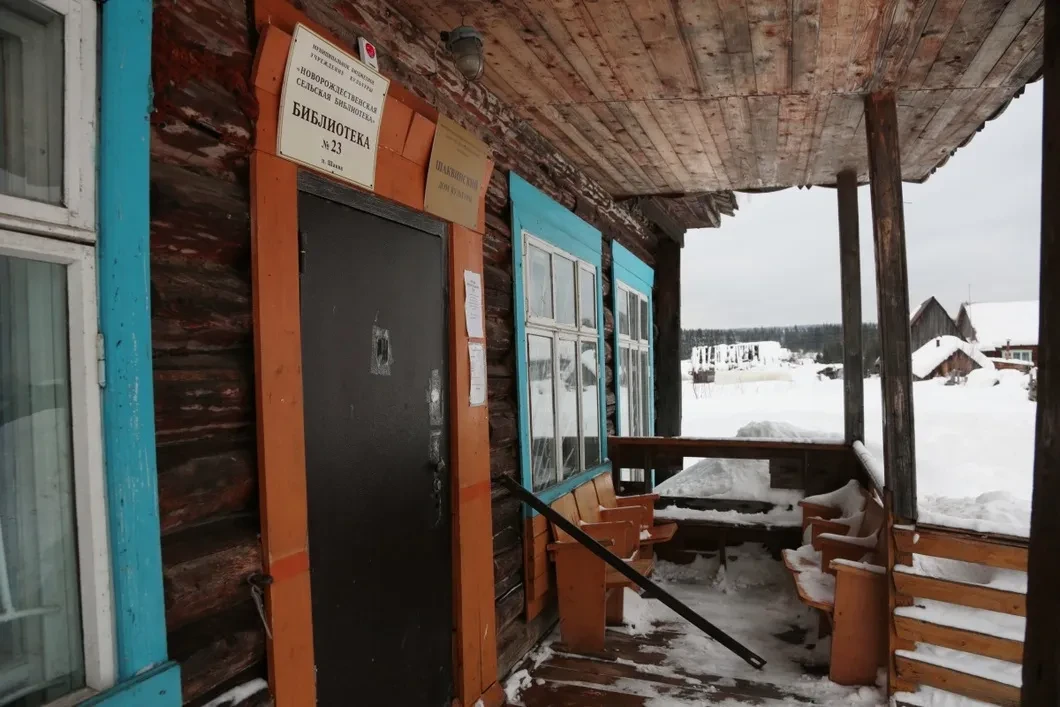 Уезжаем, когда уже стемнело. Вера Савина закрывает библиотеку-клуб на амбарный висячий замок. Раньше тут был сельский магазин. Дом Веры на другой стороне поселка, говорит, даже считала, получается зимой, километр идти, если в обход, по дороге.