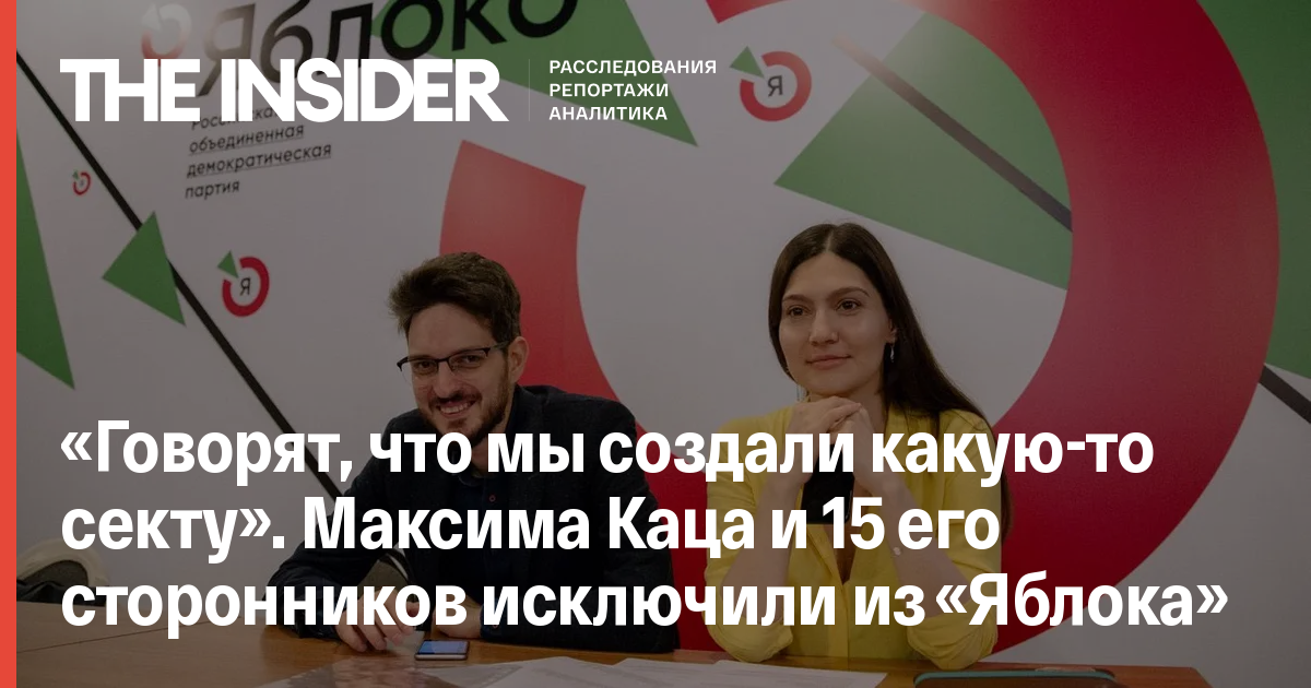 Бюро партии «Яблоко» проголосовало за исключение из партии 16 человек, в том числе сооснователя фонда «Городские проекты» Максима Каца и его сторонников. Об этом пишет РБК. По данным издания, их обвинили в «презрительном отношении к оппонентам» и попытке организовать «секту».