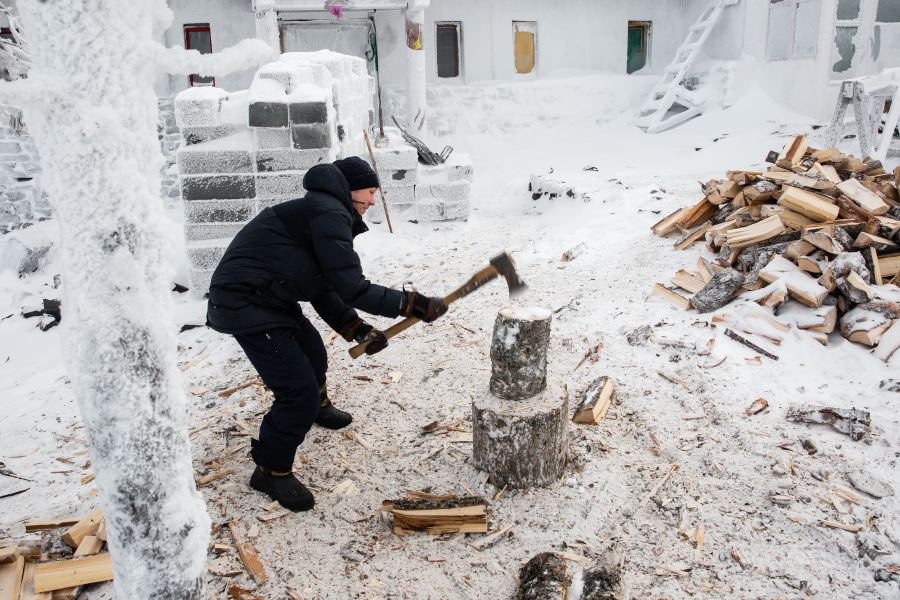 Послушник колет дрова в монастыре Шедруб Линг на горе КачканарФото: Алексей Андронов/ URA.RU/ТАСС С этой целью Сергей и отправился на Шедруб Линг. Сегодня он со смехом вспоминает о своем первом походе — представления о буддистах у него в те годы были такими, что он не придумал ничего лучше, чем взять с собой мешок риса. Уральские буддисты оказались обычными людьми с обычным рационом, так что Сергей довольно быстро освоился. Монастырь он посещает уже несколько лет — чаще всего приезжает на несколько зимних месяцев, а лето проводит в Пермском крае, в родном городе Чайковском, где работает в рыбном магазине.