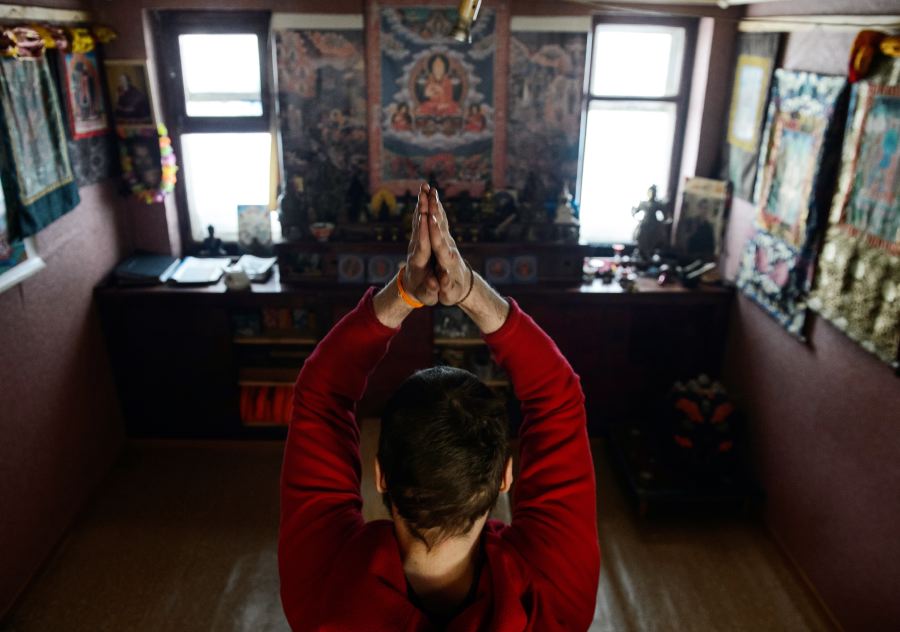 «В нашей алтарной много разных изображений, и тот, кто не вникает, думает, что это какое-то многобожие у буддистов, а на самом деле это образы, которые символизируют аспекты твоего собственного ума. Вот им и делаются подношения. А через день снимаются, чтобы сделать новые. И те, которые снимаются, мы уносим собакам и воронам».