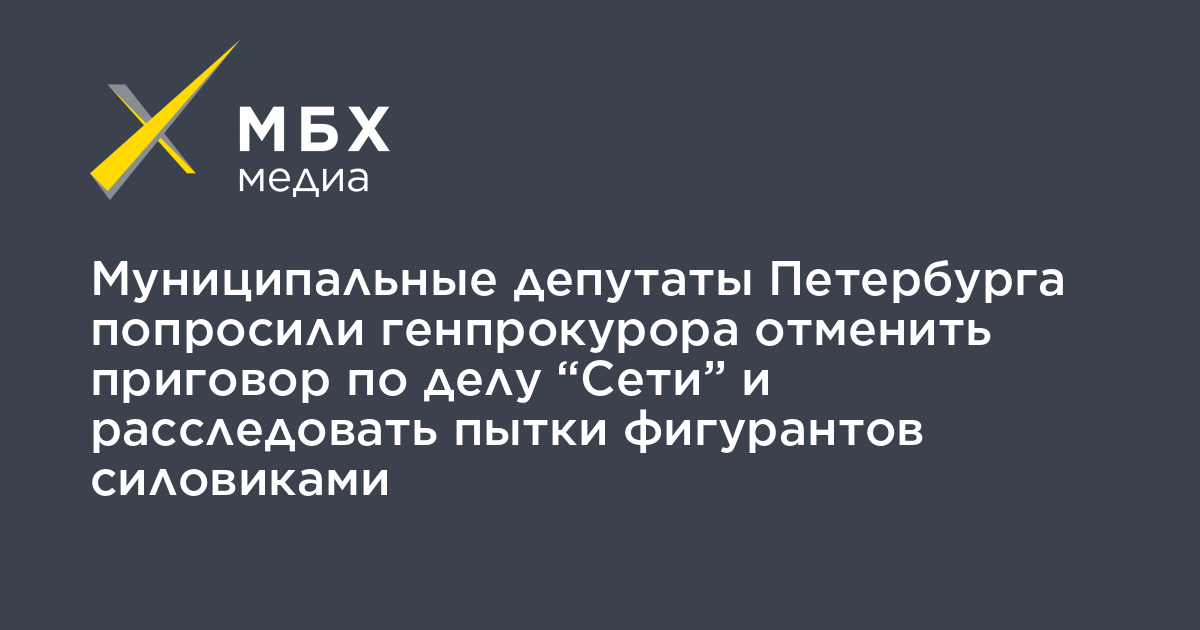Муниципальные депутаты Петербурга попросили генпрокурора отменить приговор по делу “Сети” и расследовать пытки фигурантов силовиками