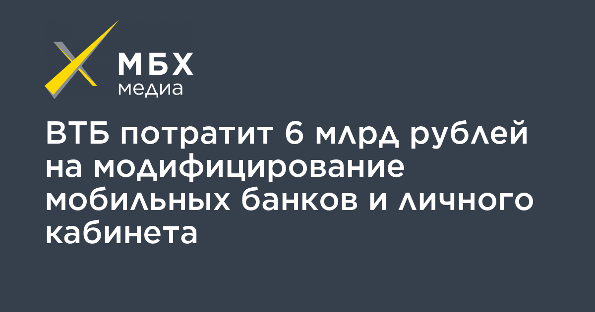 Государственный банк ВТБ выделил 6 млрд рублей на модифицирование трех сервисов – «Личного кабинета заемщика», «Мобильного банка для физических лиц» и «Мобильного банка для бизнеса 3.0». Соответствующий тендер «МБХ медиа» обнаружило на портале госзакупок.